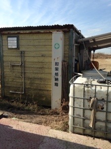 あまりあってはよろしくないのですが、もしもの時はトイレを正面から見て右側の小屋の脇に担架箱があります。