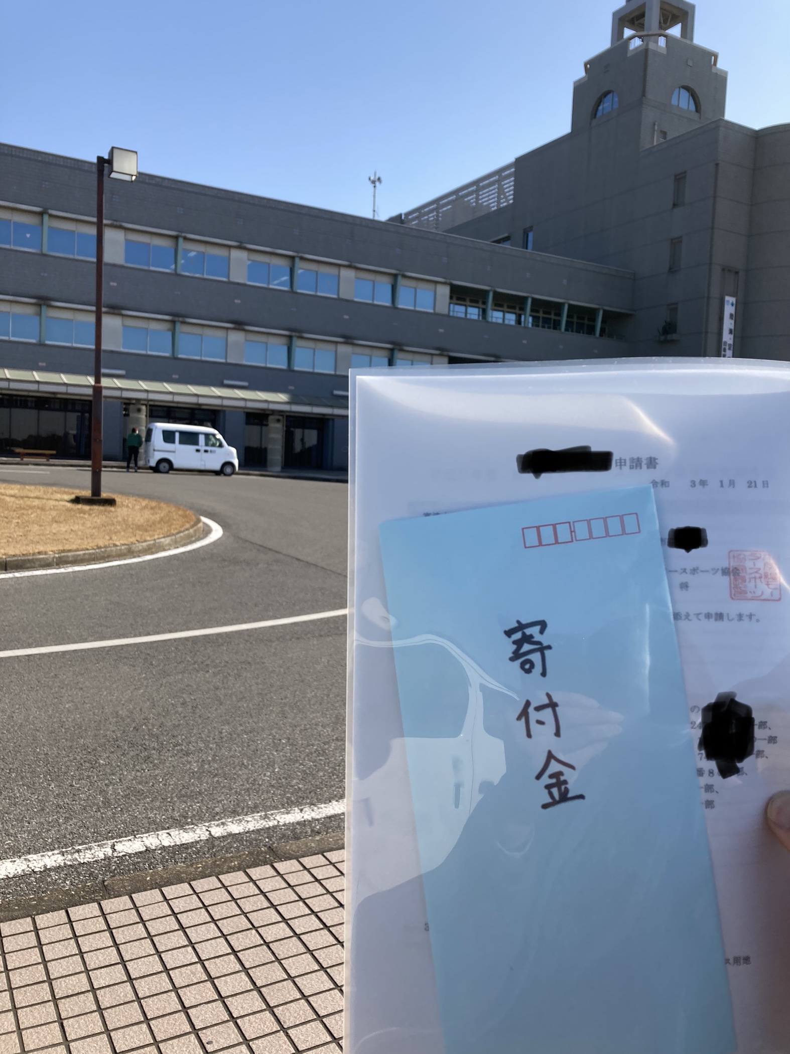 コースの契約更新申請と皆様から頂いた走行会費より、皆様から頂いた走行会費より富津市の子供達の図書へ15,000円寄付に市役所へ行ってきました!